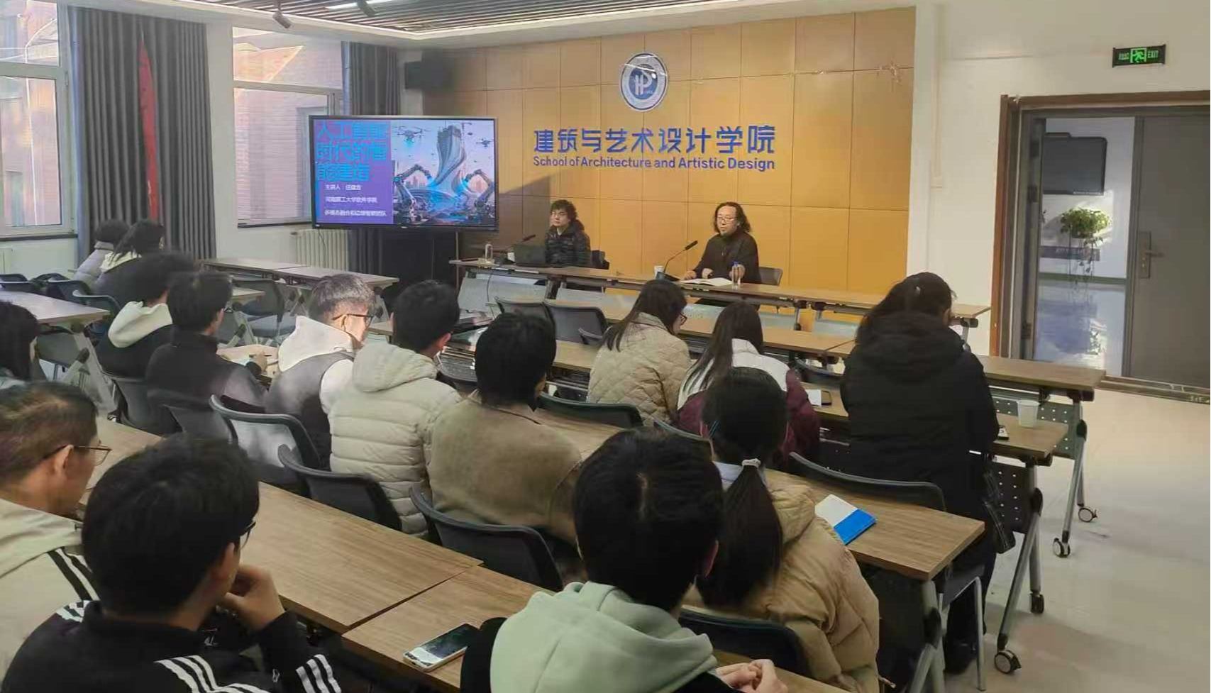 任建吉围绕智慧建筑与建造主题,从“技术演进——应用实践——未来展望”三个维度展开系统阐述。首先,他深入剖析了人工智能的技术源流与发展脉络,并结合国家在人工智能领域的战略布局与政策导向,阐明了智能建造发展的时代必然性。在应用实践层面,任建吉重点介绍了数字孪生建筑的概念,通过案例直观展示了AI在建筑方案生成、性能优化、改造更新及精细拆除等全生命周期的创新应用。他还系统梳理了人类与AI协同的三种模式,并现场演示了多款前沿建筑设计AI平台效果,生动呈现了人机协作的设计新范式。任建吉就自身研究经验对“人工智能时代的变与不变”这一问题进行了阐述。在交流互动环节,任建吉与在场师生就智慧建筑与建造人才培养、课程设置等问题进行了深入探讨。整场报告内容翔实、案例生动,既有理论高度又有实践指导意义。